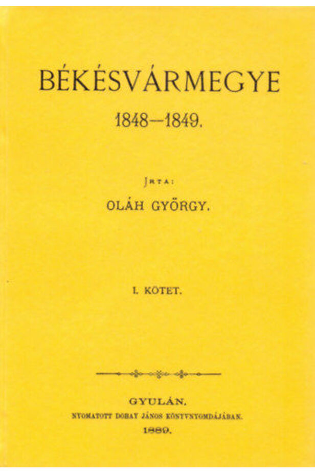 Oláh György gyulai főügyész, neves helytörténész a 19. század végén készítette el Békés megye 1848-1849. évi eseményeinek máig legalaposabb feldolgozását. A most reprint formában kiadott kétkötetes mű (Gyula, 1889-1892) első fele a forradalom következményeként megindult társadalmi változásokra helyezi a hangsúlyt, míg a második kötet az 1849. évi válságos napok, a megyét közvetlenül kevéssé, de az újoncállítás révén közvetve erősen érintő hadi események krónikáját adja. A jogász szerzőt különösen foglalkoztatják a forradalom közjogi hatásai, éppen ezért az első kötet a megye utolsó követeivel mint a rendi társadalom lezárásának szereplőivel foglalkozik, és az első, immár szabad döntési joggal bíró képviselőkkel záródik. A köztes fejezetekben szó esik a márciusi események hatásairól, a nép közt támadt zavargásokról, a vármegye rendfenntartó intézkedéseiről, a nemzetőrség megszervezéséről, az első népfelkelésről, valamint a képviselőválasztásról is. A közjogi, társadalomtörténeti érdeklődésű olvasók számára az első kötet számos érdekességet kínál, hiszen a szerző részletekbe menően idézi a korabeli levéltári forrásokat, hivatalos leveleket, parancsokat, jelentéseket, sőt még egy választási névsort is. A második kötet viszont hadtörténeti szempontból jelentős forrás, hiszen lakóhelyre lebontva, név szerint adja meg a hadi cselekményekben részt vevő Békés megyeiek névsorát, miközben kronologikusan haladva követi az egyre feszültebbé váló eseményeket.
