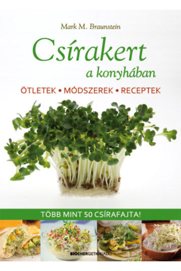 Csíráztatni könnyebb, mint gondolnánk! Munkánk eredménye már néhány nap elteltével ott díszeleg a konyhánkban, s amellett, hogy vidám látványt nyújt, fontos tápanyagokkal gazdagítja étrendünket és életenergiával tölt fel. A csírák a természet nagyszerű ajándékai, hiszen a magoncban ott található a teljes növény falatnyi méretű, ehető formában. Miért ne használnánk ezt a kicsi, ám hatalmas erejű csírát ételeink elkészítéséhez? A csírafélék képviselik a legegyszerűbben termeszthető, leggyorsabban növő és legfrissebb zöldséget. A velük járó költségek elhanyagolhatók, csodálatosan kiegészítenek bármilyen, egyébként szokványosnak mondható étrendet, és jelentős tápértékkel bírnak. A csírafélék természetes vitaminpirulának, illetve ásványi anyag- és fehérjepirulának is tekinthetők. Ebből a könyvből mindent megtudhatsz, amit a csíráztatásról és az egyes csírafajtákról tudni kell. Megismerheted több mint ötvenféle növényi csíra egészségre gyakorolt hatását. Kezdj neki már ma!!