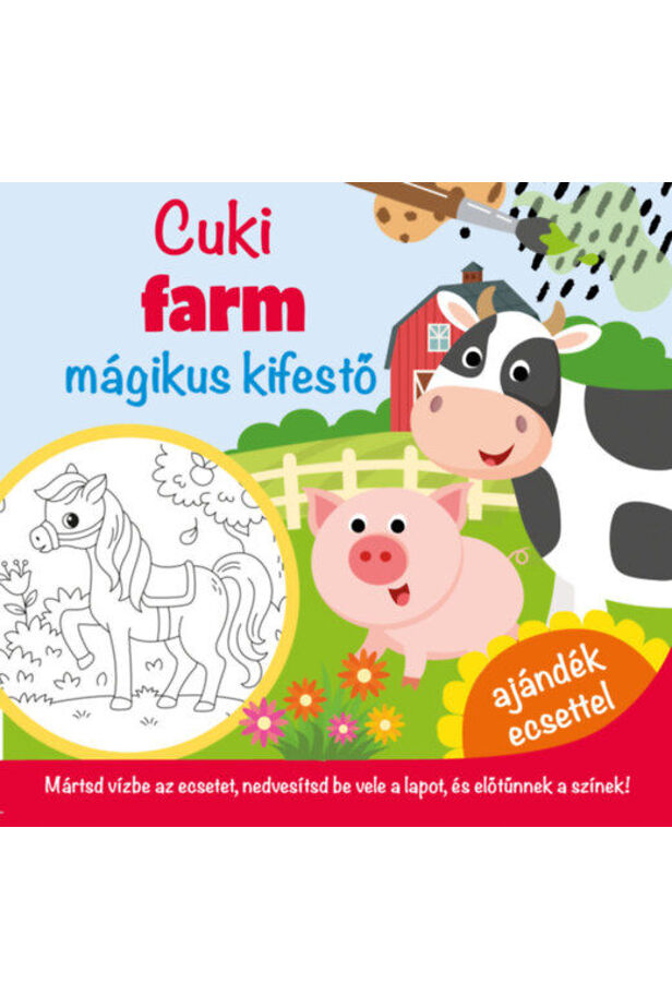 Fedezd fel a farm aranyos lakóit varázslatos módon! A Cuki farm mágikus kifestője oldalain a kisállatok színes világa csak egy vizes ecsetvonásra van - nincs szükség festékre vagy maszatolásra. A csomagban ajándék ecset is vár, hogy az alkotás azonnal kezdődhessen. Tökéletes választás a legkisebbeknek is!