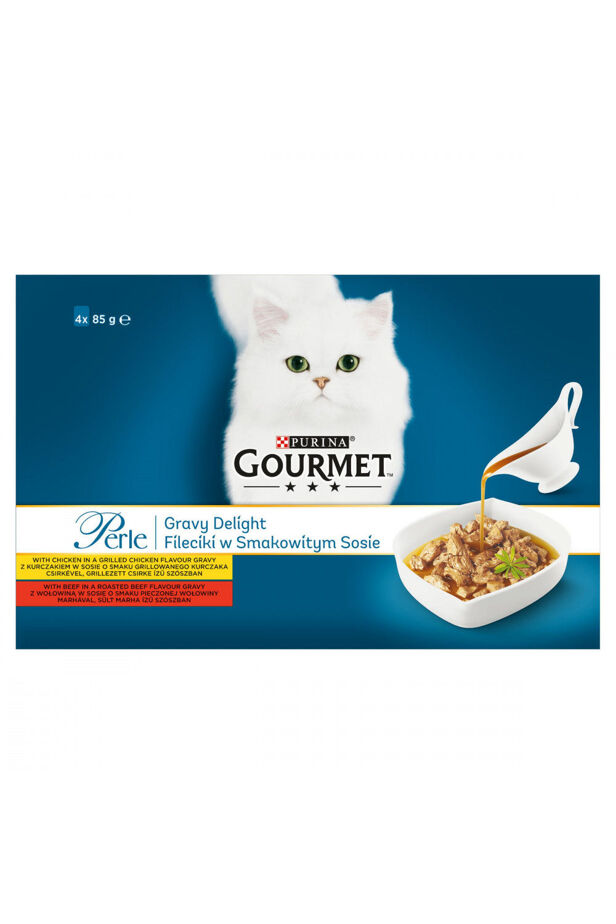 GOURMET PERLE GRAVY DELIGHT Wet cat food with chicken / beef 4x85g