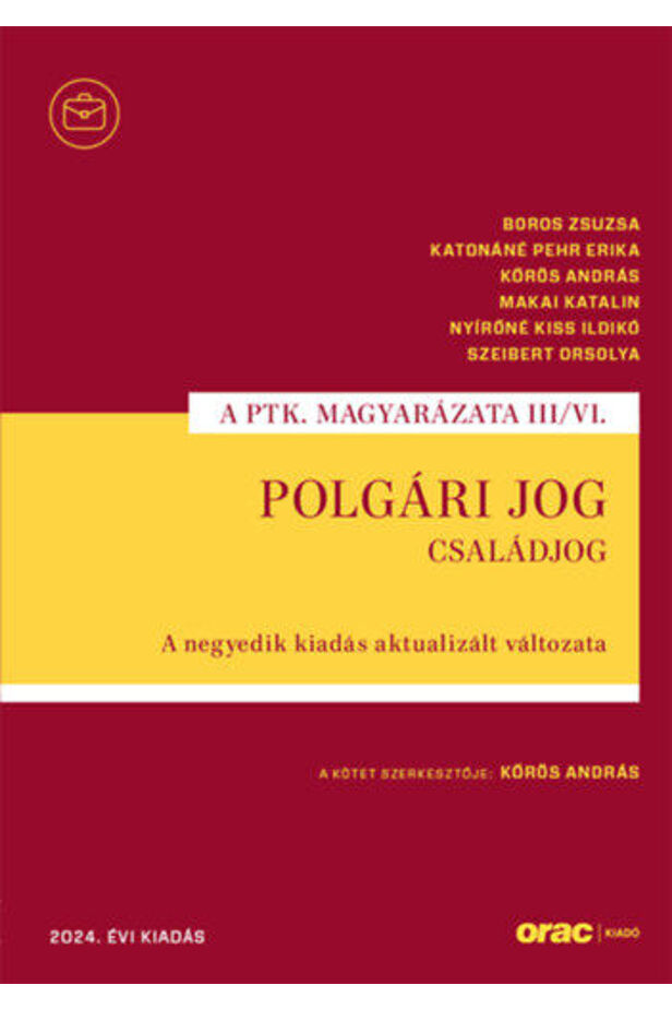 A kötet negyedik kiadásának aktualizált változata 2024. január 1-jei hatállyal tartalmazza az elmúlt években bekövetkezett - a háttér joganyagra is kiterjedő - jogszabályváltozásokat, amelyek különösen a házastársak személyi viszonyait, az örökbefogadást, a rokontartást és a szülői felügyelet egyes kérdéseit érintették, valamint kitér a családjogi perek és a közigazgatási eljárások szabályainak az anyagi joghoz szorosan kapcsolódó módosításaira. A kommentár bemutatja a Ptk. Családjogi Könyvének alkalmazásával kapcsolatban felmerült gyakorlati problémákat, az ezek megoldását célzó bírói gyakorlatot, amely az előző kiadás óta jelentősen bővült, különösen a házassági vagyonjog, a szülő és a gyermek közötti jogviszonyok, valamint a rokontartás területén, ismerteti a joggyakorlat-elemző csoportok és más szakmai testületek véleményeit. A szerzők részletesen foglalkoznak a családjoggal érintkező gyámügyi és gyermekvédelmi kérdésekkel is. A jogszabályok magyarázata során a kommentár hangsúlyozottan támaszkodik a legfrissebb jogirodalomra, az EU-s jogforrásokra és más nemzetközi dokumentumokra, mindezekkel a jogalkalmazók széles köre számára korszerű és naprakész ismereteket nyújt.