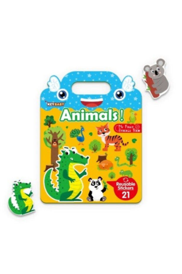 A kiadvány 21 matricát és szétnyitható hátteret tartalmaz, amelyeken különféle állatok sziluettjei és azok angol megnevezései találhatók. A gyerekeknek az a feladatuk, hogy párosítsák a megfelelő gumimatricát az egyes állatok árnyékával. Praktikus táska formájú kialakítás a könnyed hordozhatóságért.